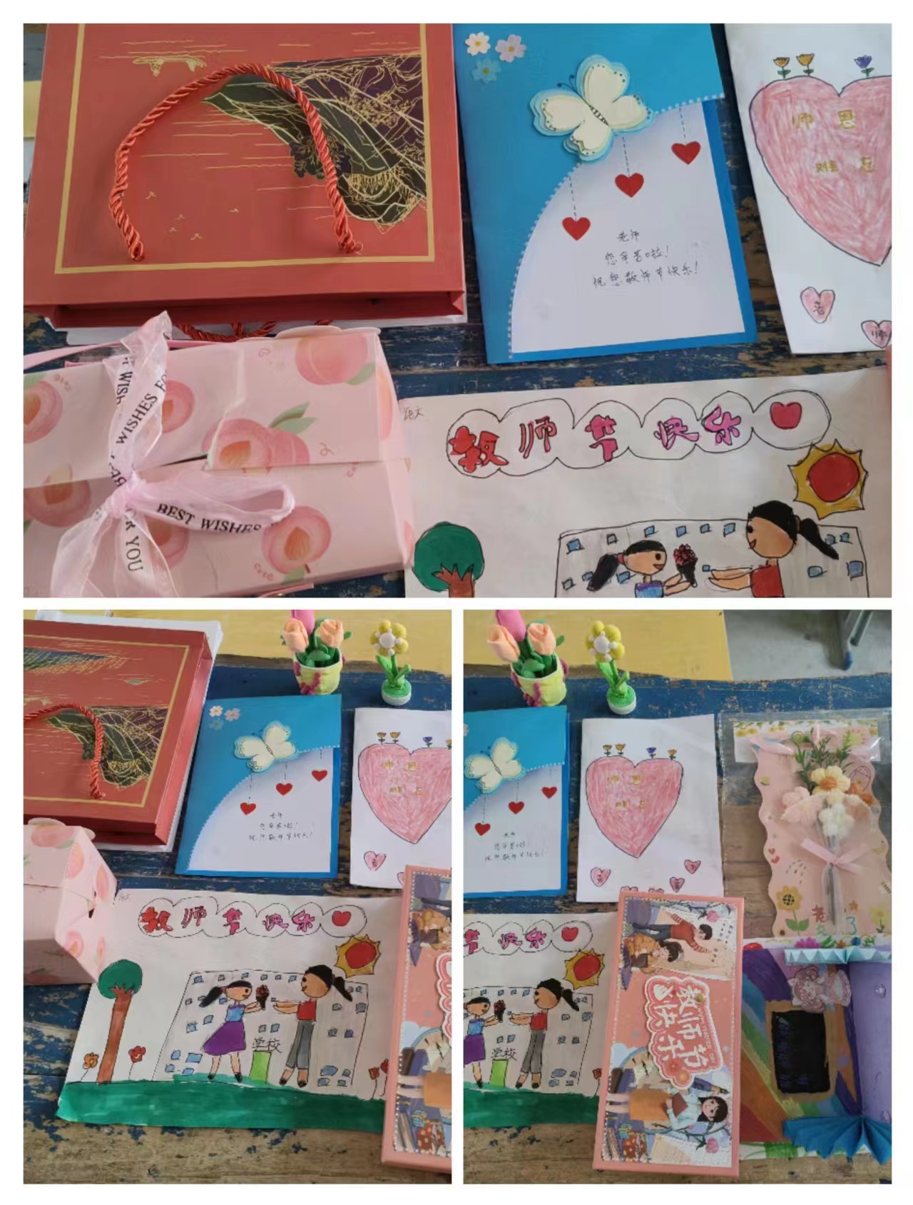 活动中,各班召开以尊师为主题的班队会,鼓励同学们以实际行动向老师们表达感恩之情。学生们纷纷为老师送上亲手制作的贺卡,还通过朗诵诗歌的形式表达对老师的祝福,各种充满爱意的礼物让老师们收获了别样的感动。(陈秀珠 陈俊杰) 埭头赤岑分园 在第39个教师节来临之际,埭头赤岑分园开展“真情祝福,感恩老师”教师节主题教育活动。