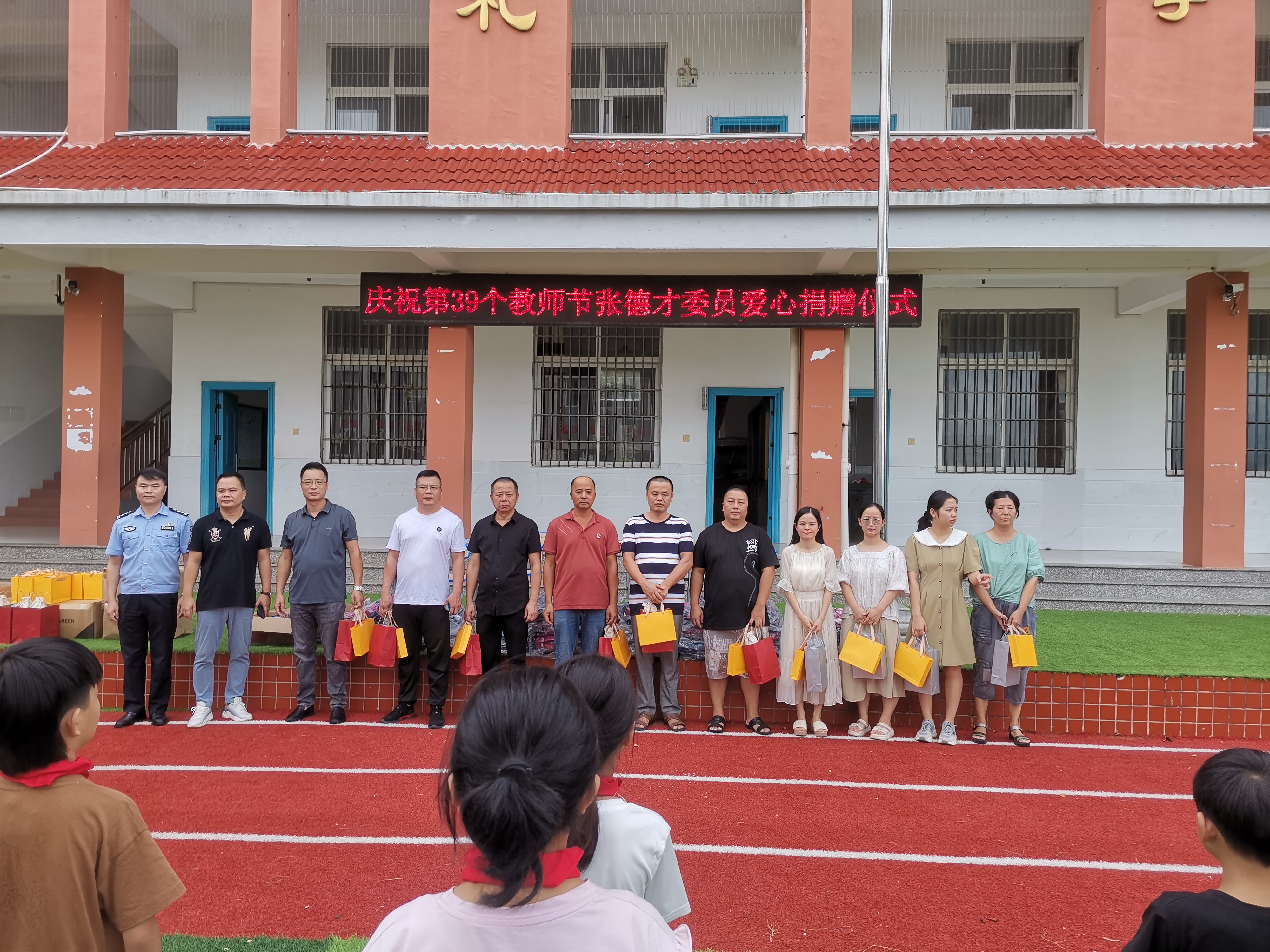 活动中,学校在校园电子显示屏等平台,滚动播放“躬耕教坛,强国有我”“老师,您好!”“教师节快乐!”“老师,您辛苦了!”等字样,为全体教师“亮灯”,送上节日的祝福,引导学生感念师恩、礼敬教师,营造浓浓的节日氛围。 通过此次活动,使全体老师增强了职业幸福感、坚定了理想信念,牢记立德树人使命,做好学生锤炼品格和学习知识的引路人。(林俊飞) 埭头石塔小学 9月8日下午,埭头石塔小学举行庆祝第39个教师节暨爱心捐赠仪式。