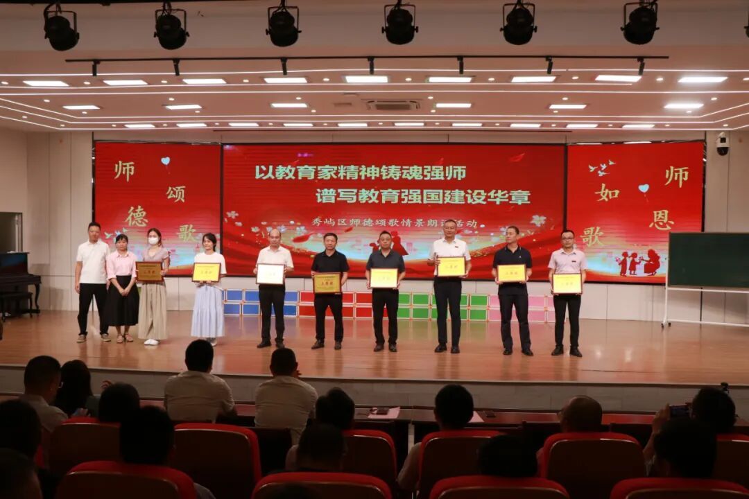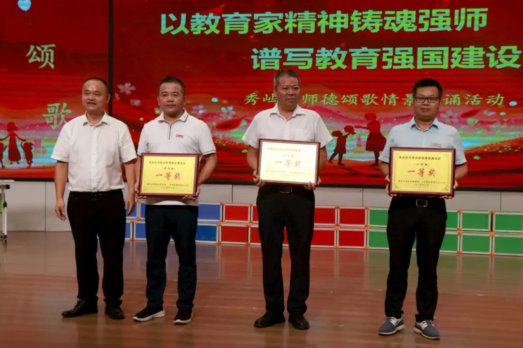 和着庆祝第41个教师节的绕梁余音,9月19日,秀屿区师德颂歌情景朗诵活动在区实验小学城东校区举行,来自全区各中小学校(园)17支教师队伍代表队、近两年新聘任教师等500余人参加。