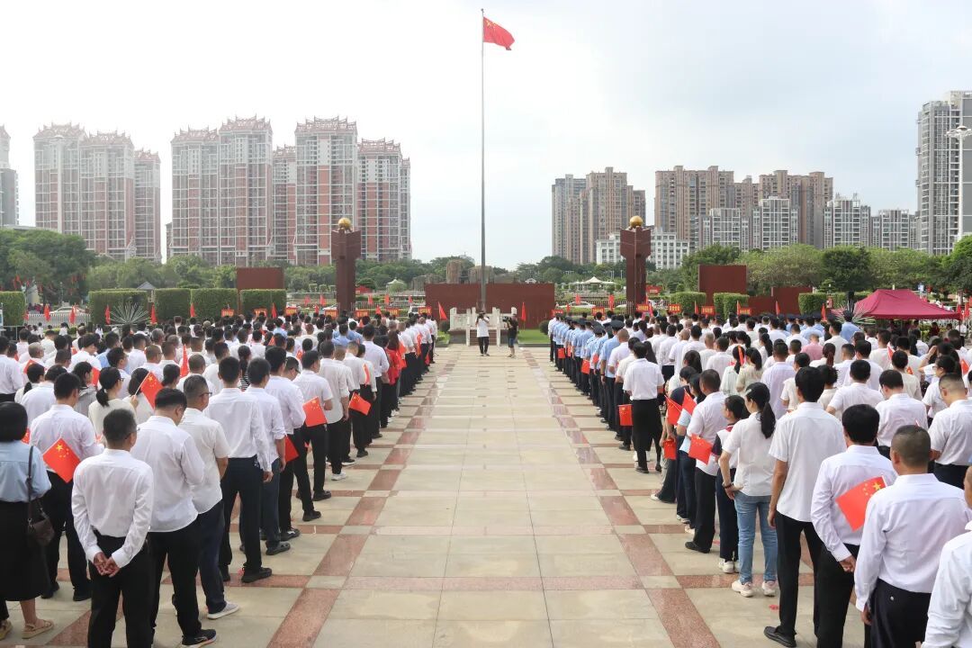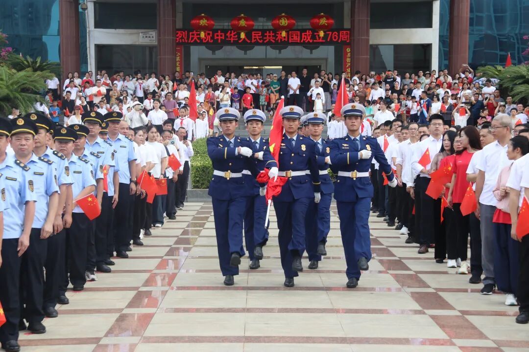 金秋送爽,丹桂飘香,秀屿大地处处洋溢着喜庆祥和的节日氛围。10月1日上午,为庆祝中华人民共和国成立76周年,秀屿区举行了一场简朴而庄重的升国旗仪式。张伯松、朱建阳、陈涛、童荔萍、谢长征等区四套班子在家领导,湄国投经开区常务副主任,区检察院检察长,以及区直机关干部、公安干警、教育医疗工作者等各条战线代表共400多人参加。仪式由区委常委、常务副区长吴兰梅主持。 8时30分,升国旗仪式正式开始。随着一声响亮的“出旗”口令,区消防救援大队国旗护卫队员精神抖擞,迈着铿锵坚定的步伐,护卫着五星红旗行进至升旗台。在雄壮激昂的《义勇军进行曲》中,鲜艳的国旗冉冉升起,迎风舒展。全体人员肃立凝视,高唱国歌,向伟大祖国致以崇高的敬意和深深的祝福。 仪式现场,数百名社会各界群众自发聚集,手持小国旗,神情庄重,共同庆祝新中国76周年华诞。 “我是中国少年先锋队队员,我热爱中国共产党,热爱祖国,热爱人民……”升旗仪式后,50名少先队员面向国旗庄严宣誓。他们神情坚定,誓言铿锵,表达了新时代少年童心向党、立志报国的坚定信念。 活动最后,全体人员齐声高唱《歌唱祖国》,激昂的旋律回荡在广场上空,深情的祝福汇成共同的心声:祝愿伟大祖国山河锦绣、繁荣昌盛! 七十六年风雨兼程,谱写了壮丽史诗;七十六载砥砺奋进,迎来了盛世华年。站在新起点上,全区上下将锚定“五区”战略,聚焦“三宜”目标,以“秀屿担当”激发动力,以“秀屿力量”凝聚合力,努力在发展大局中打头阵、当主力、作贡献,奋力谱写中国式现代化秀屿实践的崭新篇章! |