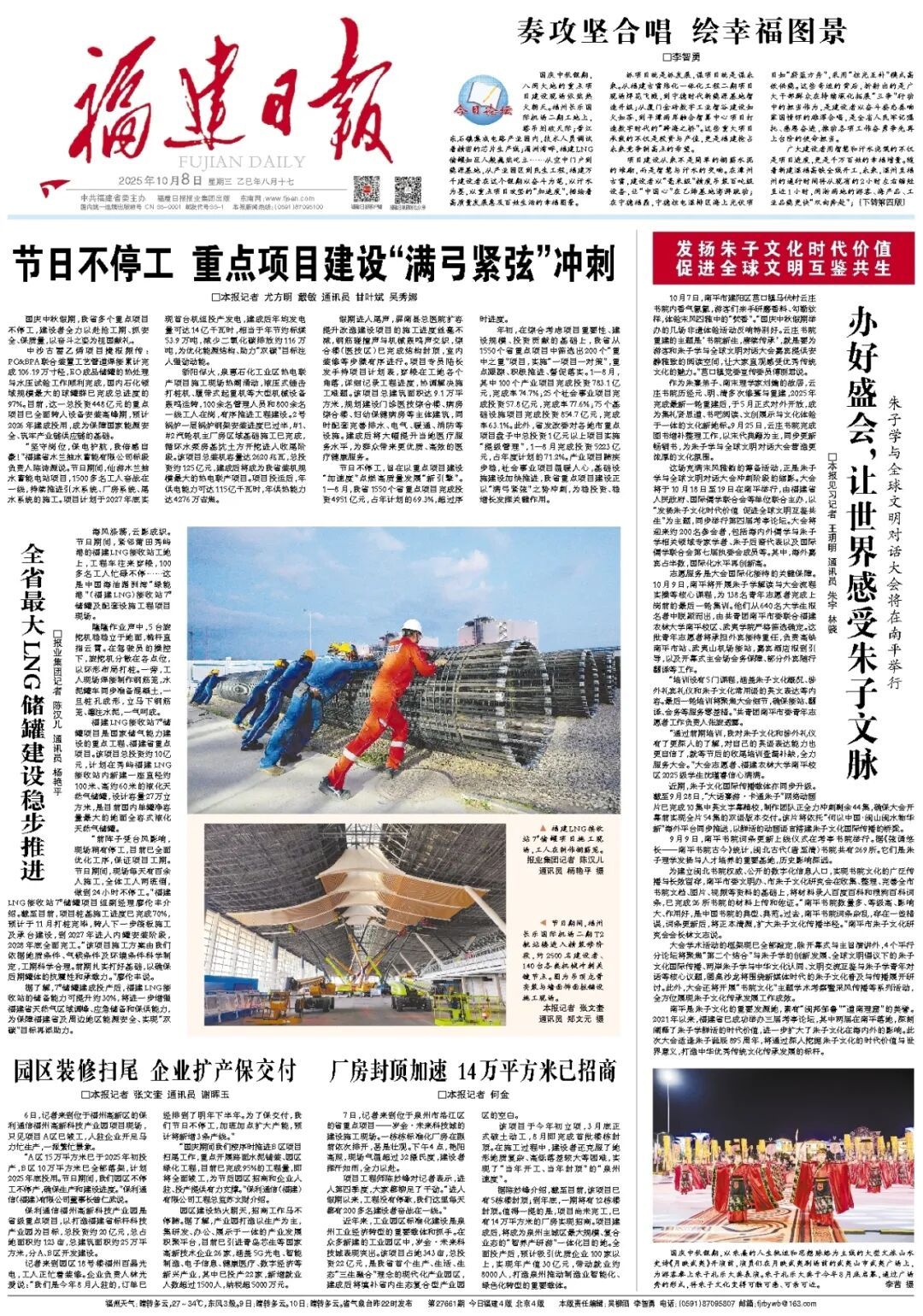 海风涤荡,云影成织。节日期间,紧邻莆田秀屿港的福建LNG接收站工地上,工程车往来穿梭,100多名工人忙碌不停……这是中国海油湄洲湾“绿能港”(福建LNG)接收站7^#储罐及配套设施工程项目现场。 福建LNG接收站7^#储罐项目施工现场,工人在制作钢筋笼。陈汉儿 杨艳平 摄 隆隆作业声中,5台旋挖机稳稳立于地面,桅杆直指云霄。在驾驶员的操控下,旋挖机分散在各点位,以环形布局打桩。一旁,工人现场焊接制作钢筋笼,水泥罐车同步准备混凝土,一旦桩孔成形,立马下钢筋笼、灌注水泥,一气呵成。 福建LNG接收站7^#储罐项目是国家储气能力建设的重点工程、福建省重点项目。该项目总投资约10亿元,计划在秀屿福建LNG接收站内新建一座直径约100米、高约60米的液化天然气储罐,设计容量27万立方米,是目前国内单罐净容量最大的地面全容式液化天然气储罐。 “前阵子受台风影响,现场稍有停工,目前已全面优化工序,保证项目工期。节日期间,现场每天有百余人施工,全体工人两班倒,做到24小时不停工。”福建LNG接收站7^#储罐项目组副经理廖伦丰介绍。截至目前,项目桩基施工进度已完成70%,预计于11月打桩完毕,转入下一步筏板施工及承台建设,到2027年进入内罐安装阶段,2028年底全面完工。“该项目施工方案由我们依据地质条件、气候条件及环境条件科学制定,工期科学合理。前期扎实打好基础,以确保后期罐体的抗震性和承载力。”廖伦丰说。 据了解,7^#储罐建成投产后,福建LNG接收站的储备能力可提升约30%,将进一步增强福建省天然气区域调峰、应急储备和保供能力,为保障福建省及周边地区能源安全、实现“双碳”目标再添助力。 |