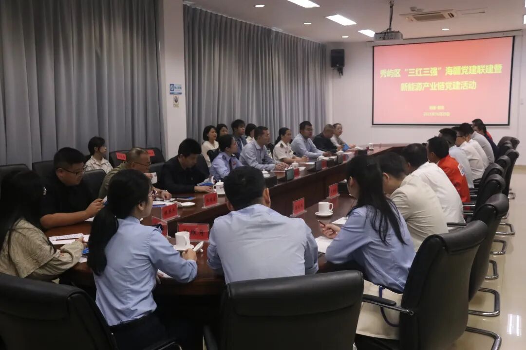 作为10月轮值单位,福建LNG充分发挥产业链龙头作用,通过生动的影像资料,系统介绍了LNG特性、产业发展前景、LNG产业园整体概况及湄洲湾“绿能港”建设进展,全方位展现LNG产业发展全貌。在接收站现场,讲解员详细介绍了接收站的建设规模、运营模式、核心设备及安全保障体系,从LNG卸船、储存到气化外输的关键环节逐一讲解,让参会人员直观感受LNG产业的科技含量与规范化运营水平,深刻体会到秀屿区在新能源产业布局中的坚实基础与发展潜力。 政策上门精准滴灌 政策宣讲环节,秀屿港海事处、区工信局、区税务局的党员代表组建“政策宣讲团”,针对性开展专业解读,为企业送上“政策大礼包”。秀屿港海事处立足LNG船舶通航安全,针对船舶口岸申报流程、通航水域安全管控要求、应急协作机制等内容进行重点说明,帮助企业熟悉海事监管标准,掌握船舶进出港口风险应对措施;区税务局围绕个税申报与固定资产一次性税前扣除政策展开讲解,结合新能源企业运营实际,解读政策适用范围、申报流程及注意事项,帮助企业精准把握政策要点,切实减轻税负压力;区工信局则重点解读陆上长输油气管道保护工作要点,从日常维护、隐患排查、施工审批到应急处置等方面,明确工作标准与责任要求,为企业规范运营、防范风险提供了清晰指引。 部门协同应哨攻坚
