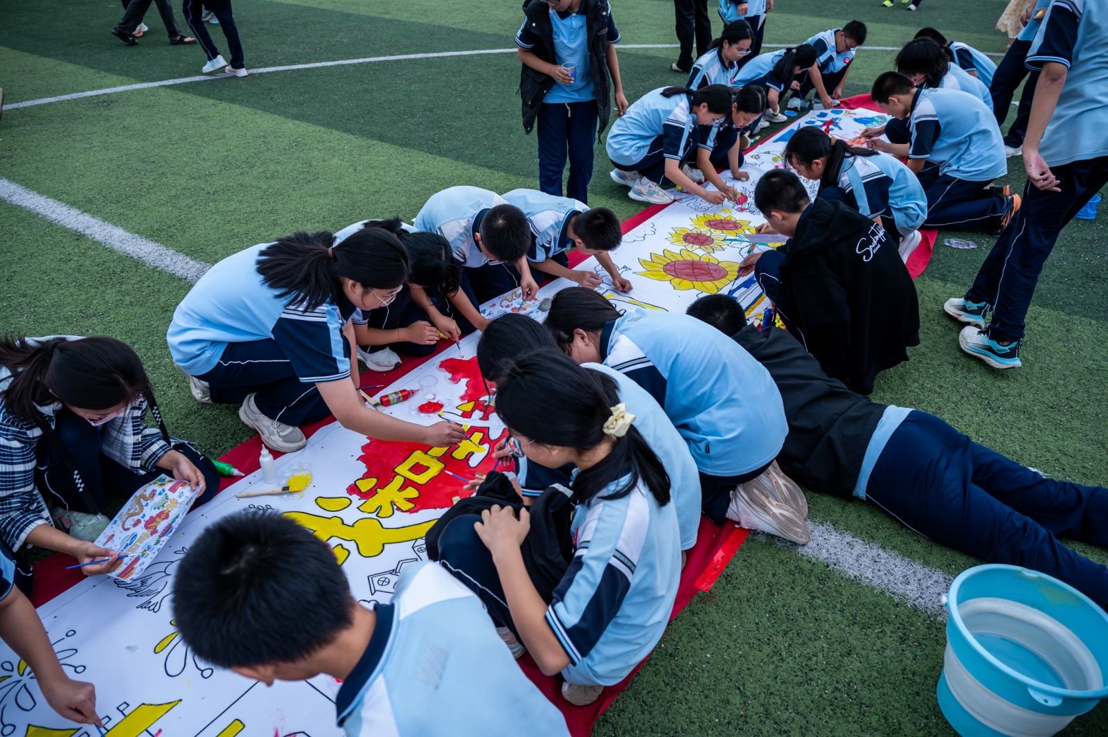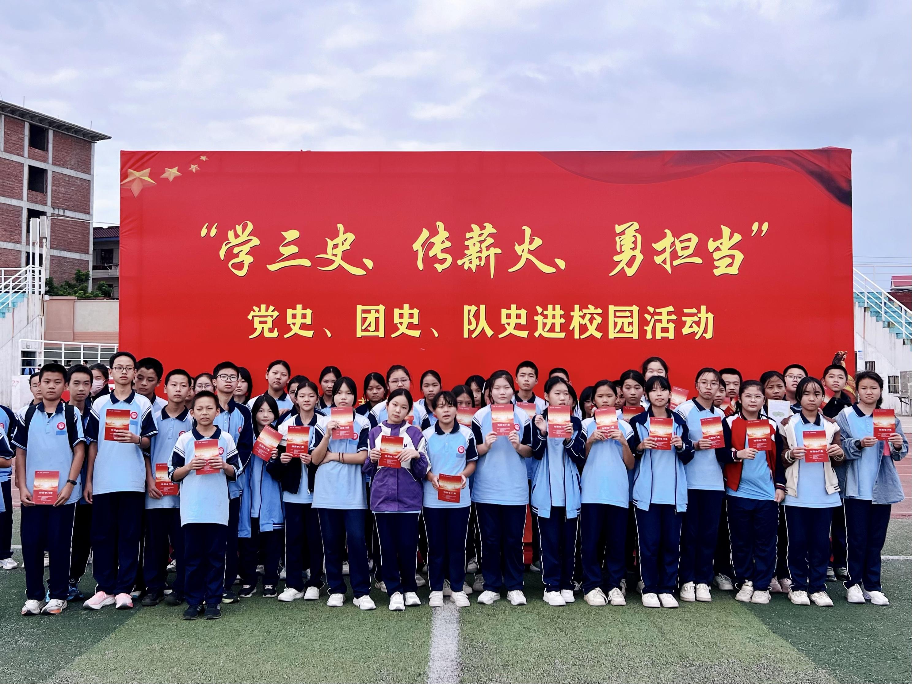 百人绘画环节以“笔尖诉初心,画里传精神”为核心,在操场中央搭建起一场充满青春气息的红色创作盛宴。近百名学生以画为语,将对党史、团史、队史的理解融入多彩笔触,用色彩与线条定格红色记忆、抒发青春感悟。 “三史”浸润游园会 互动点亮红色情