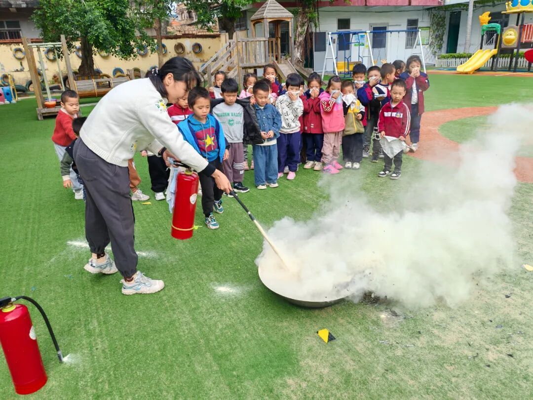 埭头第一中心幼儿园赤岑分园灭火器使用现场教学