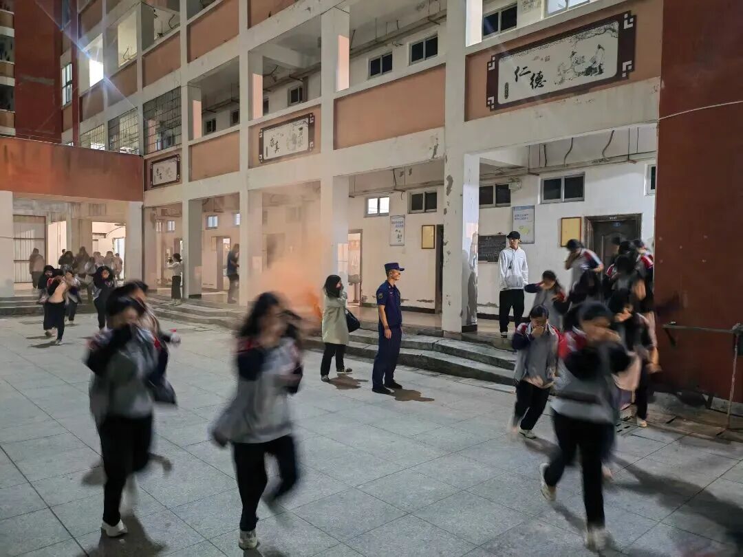 秀屿区实验中学举行夜间消防演练活动