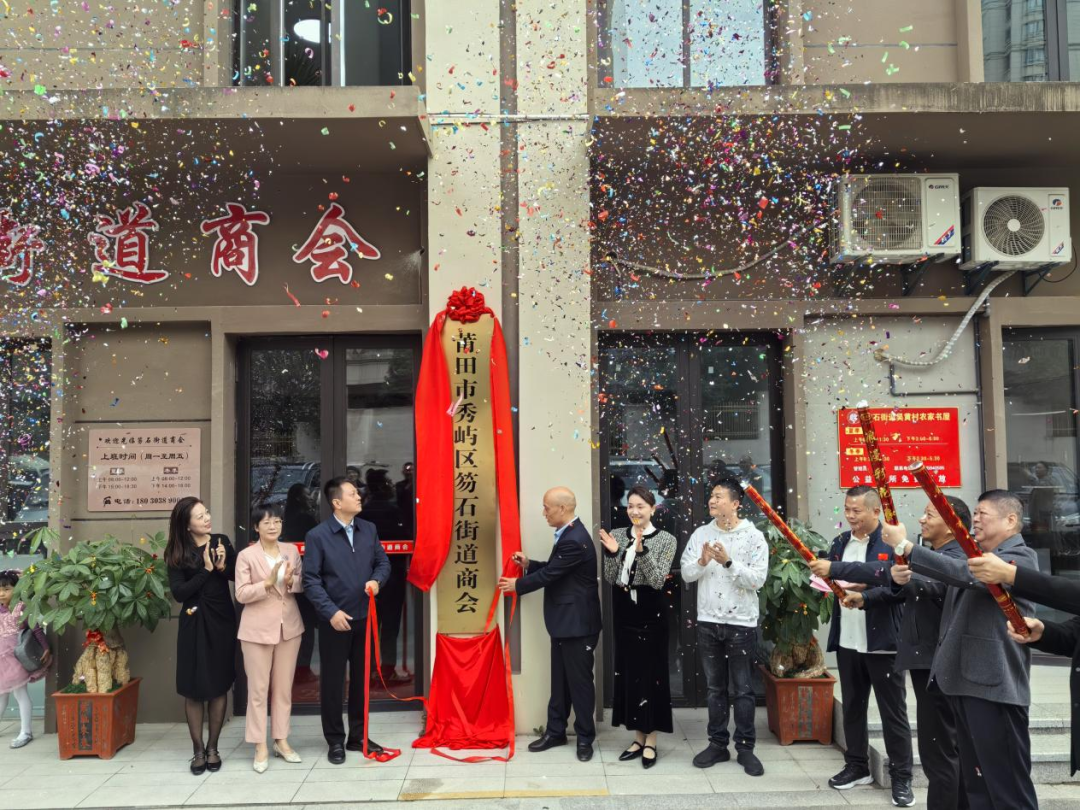 11月15日上午,莆田市秀屿区笏石街道商会揭牌仪式隆重举行。区委常委、统战部部长孙云峰,区人大常委会副主任吴素娥,新当选的笏石街道商会会长陈国潘等领导嘉宾共同为商会揭牌。