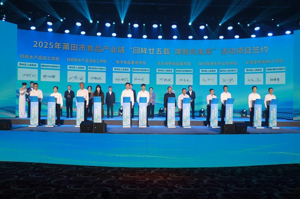 11月27日,市政协“回眸廿五载 焕新向未来”牢记嘱托委员联系界别群众活动在秀屿举行。市政协主席、市食品产业发展暨招商工作领导小组组长沈萌芽,副市长王洋,市政协副主席林惠中、张志宏、张宗贤、连向红,秀屿区政协主席童荔萍,秀屿区委常委、常务副区长吴兰梅,秀屿区人大常委会副主任吴素娥,秀屿区政府副区长顾斌,秀屿区政协班子成员等领导嘉宾出席活动。 活动在专题视频《牢记嘱托齐奋进富民产业捷报频——南日鲍成长廿五载回眸》中拉开帷幕。视频生动呈现了秀屿区南日鲍产业过去二十五年来牢记嘱托、砥砺奋进的发展历程与丰硕成果,引发了与会者的广泛共鸣。 活动现场,12个产业项目集中签约,涵盖调味品生产、海产品精深加工、深远海养殖装备、文旅融合等领域,为食品产业集聚发展注入新动能。政银企战略合作同步推进,秀屿区政府与农业银行莆田市分行签署政银战略合作协议,多家银行与区五大水产协会签订产业融合发展协议,授信总额达125亿元,标志着“产业+金融”融合迈上新台阶。
