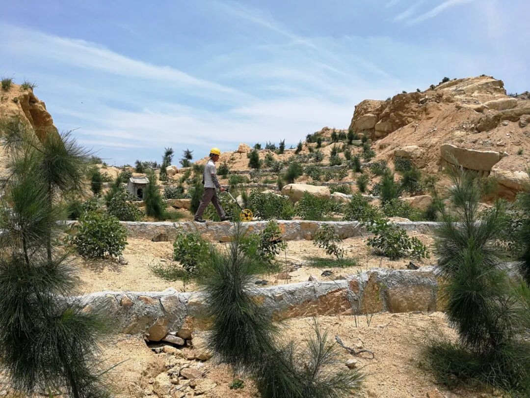 新植的苗木间,工作人员在实地测量水平阶长度。(资料图片) 种树时,行是行,列是列,一米见方的树坑,差一点都不行。“荒山植树不同于园林绿化,整地要到位,坑一定要深,根才能扎住,才有办法扛住大风向上生长。”林金成说。 树种千挑万选,栽植精心呵护。刚种下的树苗被狂风卷走,就含着泪再种一次;石坎水平阶扛不住水土流失,那就再加高再加宽……就这样,凭着一腔热血,林金成带着施工队,在石头山上创造了超过95%的苗木成活率。2019年,林金成被全国绿化委员会授予“全国绿化奖章”。 临别前,林金成还分享了一件“小幸事”。他说,自己最近在汀港山上发现了国家二级保护动物豹猫,上一次见到这位“老朋友”还是10年前,当时豹猫下山偷鸡,村民都烦它,后来山上几乎看不到野生动物的踪迹了,众人又惋惜不已,现在豹猫跟着好生态一起又回来了。 “生物多样性越丰富,生态系统就越稳定。”如今的汀港山,万物萌发,鸢飞鱼跃,草木多美。绿色,已成为汀港山最厚重的底色。 角色转变:从采石人到管护员 鹭峰山面朝平海湾,横亘东峤镇、平海镇。沿着泥石裸露的山路攀上半山腰,木麻黄树苗排列如朝班肃立,周边卷荚相思成阵。 “最近是连续大风天,我们至少一个月要上山一趟,查看苗木倒伏的情况,如果有幼苗被风吹倒,第一时间扶植就能活。”踩着黄泥碎石小道,林洪标缓缓往山上走去,“入秋以来特别干,降水又少,浇水的事也得跟上。” 61岁的林洪标,皮肤黝黑、身材结实,长年做工练出了一身劲,说起话来却慢条斯理:“这山上没水,得调来水车,从山下抽上去,浇一次水,一拉就是十几车。” 林洪标是秀屿埭头本地人,汀港山、鹭峰山,如今都是他的“责任田”。聊起苗木管护,林洪标讲得头头是道。谁能想到,他在“转型”前,竟是一个天天和石材打交道的建筑工人,采过石、搬过砖、盖过房。 在林洪标10多岁的时候,因为家贫,就跟着老家的采石队出来做工,当时,他们的开采对象就是秀屿这两座大型石头山。 “最早挖石头的时候,还没有这些大型机械,我们三四个人一班,一共十几班人在山上,用锤头凿子采石,再人力搬运,一天挨饿受累要干11个小时。”林洪标回忆道。 长期遭到无节制开采,鹭峰山和汀港山的境况相差无几,碎石堆弃、地表裸露、表土剥离殆尽。加之鹭峰山南部临海,岸线上早期有盗采者频繁出没,叠加地表径流冲刷、风蚀等自然因素影响,破坏更为严重。 “没想到会造成这样的后果。那时候我们只管经济效益,填饱肚子之前,哪有人去考虑生态效益。”如今“朝九晚五”植树护苗的林洪标回望那段时光,恍若隔世,“好在1995年前后,政府叫停了一切开采行为。” 种树和采石一样,都不容易。林洪标说,遇到有些斜面、断面,土和水全要人工肩挑上去,十几个人轮着挑担子,有时候路被水冲没了,就继续开路上去,到了后期施肥、浇水,一个片区都要几十吨,耗时费力,一晃几年,也就这么干下来了。