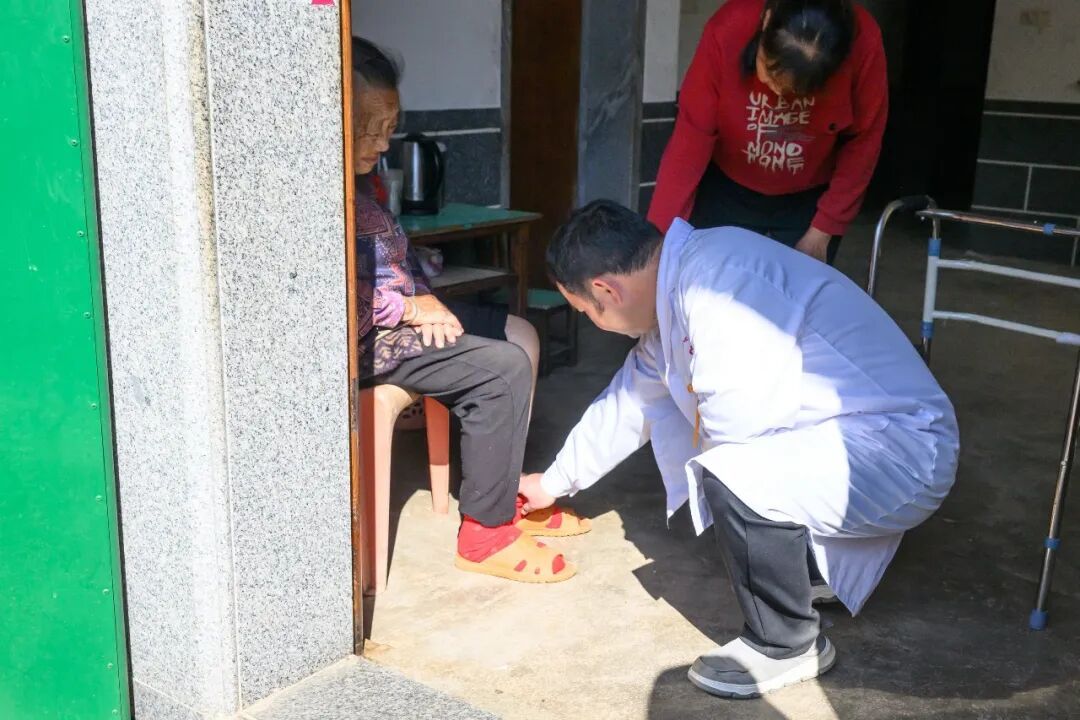 吴群雄为村民看诊 这一尝试,源于吴群雄自身的经历。今年春节,他出诊时不慎摔倒,导致骨折。行动不便的切身感受,让他对岛上老人的日常难处有了更深体会,也萌生了为老人们提供居家照料的想法。 春节刚过,吴群雄顾不上伤腿还未痊愈,便开始了走访。详细记录每位老人的身体状况、用药习惯,留心他们的个人喜好与具体需求;在邻里乡亲中物色合适护工,为老人安排送餐、清洁等日常服务。吴群雄自己则坚持定期上门巡诊,关注老人的健康状态。