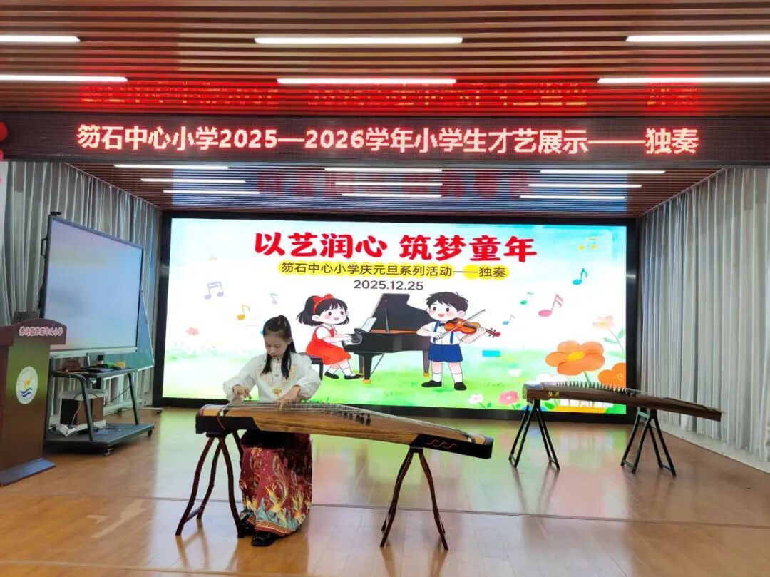 笏石中心小学“以艺润心 筑梦童年”学生才艺展示暨庆元旦独舞独奏比赛热烈开场。小选手们齐聚一堂,灵动的舞姿与悠扬的乐声相映成趣,交织成冬日里最温暖的旋律。活动不仅为喜迎元旦增添了绚丽色彩,更生动践行了“五育并举”的教育理念,让美育之花在校园中绚丽绽放。