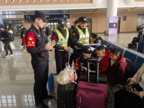 春潮涌动迎春运,盛会将至护平安。为切实筑牢铁路运输安全防线,全力保障春运期间出行顺畅,为全国两会顺利召开营造安全稳定的环境,2月3日上午,秀屿区护路办牵头统筹,联合莆田铁路派出所、区检察院、区法院、区应急局,携手福州工务段莆田线路车间、线路巡防队、供电车间、福州车务段莆田站等铁路相关单位,在莆田火车站共同开展“战春运、迎两会、保安全”主题宣传教育活动。