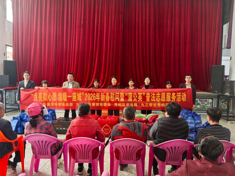 新春将至,年味渐浓。为传递司法温情、深化“蒲公英”普法品牌建设,2月6日上午,区司法局联合市委统战部、九三学社莆田市委会、九三学社秀屿区支社等单位,走进东庄镇东沁村开展 2026 年“点亮微心愿 温暖一座城”新春慰问暨“蒲公英”普法志愿服务活动。为让温暖精准落地,活动前期,区司法局联合东庄镇提前摸排走访,广泛收集群众“微心愿”,确保慰问物资与法律服务精准对接群众需求。