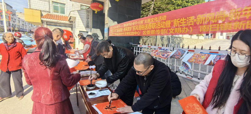 无联不成春,有联春更浓。为营造文明祥和、喜庆热烈的节日氛围,2月13日,南日镇举办“骏马挥毫 新风贺岁”移风易俗送春联暨“新生活·新风尚·新年画”活动,以笔墨寄情,以文化暖心,将浓浓年味与文明新风送到群众手中,传递“大爱之城”的温情关怀。