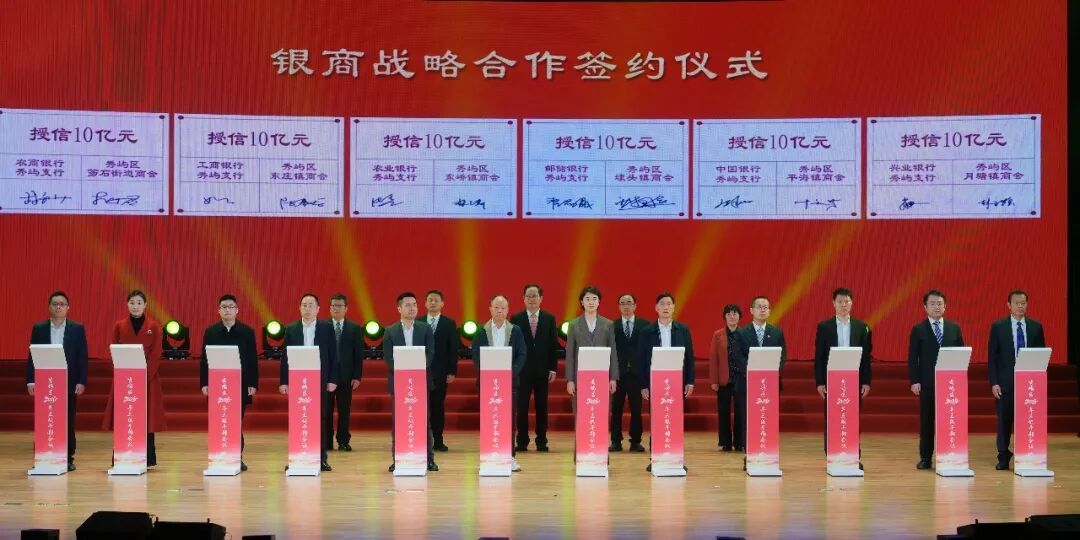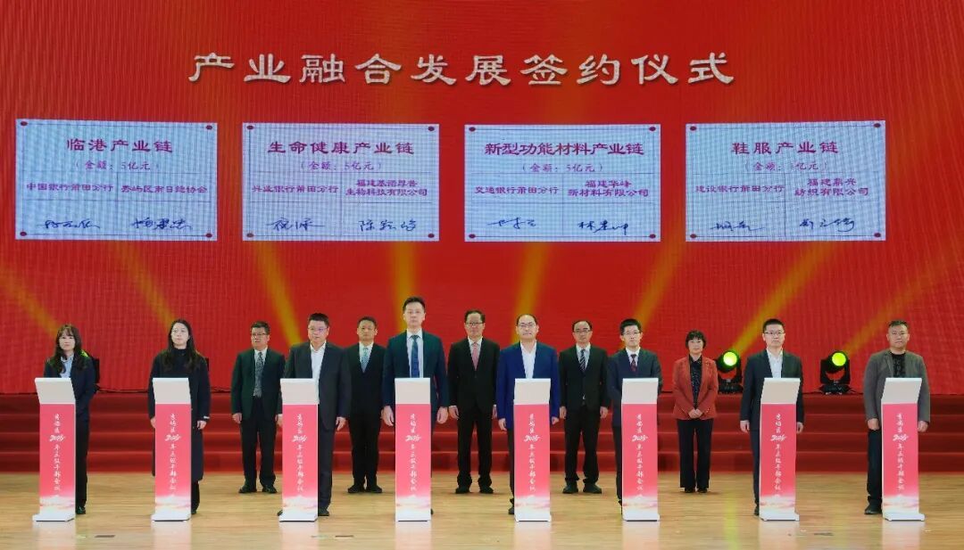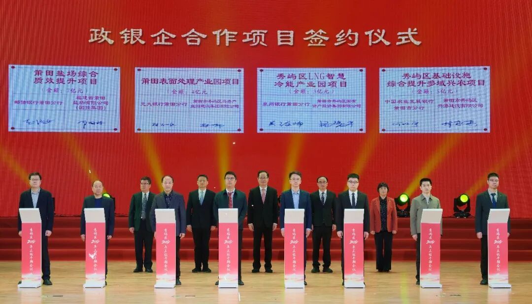 会上依次举行项目招商推介暨重点项目集中签约、政银企对接会暨金融合作协议签约、产业发展战略合作集中签约、“安居留才”集中签约仪式,同步开展村级集体经济经营性收入及收益奖励发放、各类先进集中表扬、任务清单与发展清单颁发仪式,并集中观看《和美莆田·秀屿篇》《秀屿“十五五”规划展望》宣传片。 永荣科技CPL一体化三期、铭晶食品研发中心、丰联肉类联合加工等10个超亿元优质项目现场签约,总投资164.6亿元,精准锚定海洋经济、新型功能材料、鞋服智造、食品健康四大核心赛道,为产业转型升级蓄势赋能。