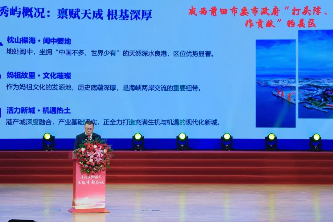 浪起三湾,潮涌秀屿。2月27日,聚焦“产港城人”融合高质量发展航向,秀屿区三级干部会议盛大启幕,区、镇、村三级干部齐聚盛会,共赴发展之约、共商奋进大计。会议深入学习贯彻习近平新时代中国特色社会主义思想、党的二十大和二十届历次全会、中央经济工作会议精神,全面落实中央和省委、市委决策部署,回望实绩、凝练经验,表彰先进、树立标杆,谋定路径、明晰方向,守正创新、赓续征程,进一步激发奋进斗志、提振创业激情、昂扬实干精神,全力打造“产融港通、城兴人和”现代化滨海新城,为秀屿“十五五”发展谋篇开局注入强劲动能。