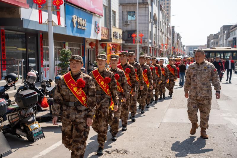 仪式现场庄重热烈、暖意融融,处处洋溢着参军报国的昂扬氛围。新兵们身着笔挺军装、胸戴光荣红花,朝气蓬勃、意气风发,眼神中满是对军旅生活的向往与保家卫国的坚定信念。