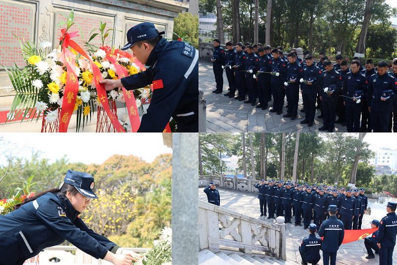 陵园内庄严肃穆,全体执法员身着制服、整齐列队,神情庄重肃穆。在巍峨的革命烈士纪念碑前,礼兵缓步上前敬献花篮,细心整理缎带。全体人员脱帽肃立,向为民族独立、人民幸福和国家安宁英勇献身的英烈默哀致敬,深切追思英烈们浴血奋战、无私奉献的崇高精神。默哀毕,面对鲜红党旗,全体人员高举右拳,重温入党誓词,铿锵誓言在陵园上空久久回荡,彰显新时代海警执法员忠诚于党、矢志守海的坚定决心。随后,大家手持鲜花,依次瞻仰烈士纪念碑、擦拭墓碑,缓步绕行缅怀英烈,在追思中感悟革命先辈的家国情怀与英雄气概。