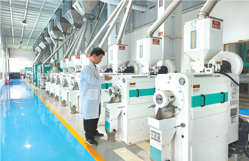 图为工作人员查看生产线设备运行情况 步入厂区,引人注目的是32个高耸的立筒谷仓。每个谷仓高17米,容量可达145吨。在谷仓旁边,随着“滴”的一声,一辆自动卸车将40吨稻谷卸进7米深的仓内。紧接着,“哒哒哒”的声音响起,提升机自动把稻谷输送至3楼的谷仓。大型自动去杂机对稻谷进行初步净化,每小时可处理50吨。 走进流水线车间,机器的运转声更加清晰。稻谷从谷仓被提升机送到砻谷机进行剥壳,再通过重力筛实现稻谷与糙米的精准分离。现场12台米机同时作业,采用“轻压多碾”工艺,先后经过4道碾米工序,再进行水抛光、分级,最后通过3台色选机层层筛选进入凉仓。每一道环节都封闭运行,车间里看不到传统米厂人工忙碌、粉尘飞扬的场景。 在车间的一角,记者看到了这套生产线的“智慧大脑”——PLC智能数字化控制系统。系统屏幕上实时跳动着加工量、产量、能耗等数据,设备自动启停。一旦出现堵料或故障,系统智能识别并迅速处置,告别了过去那种工人来回巡检的模式。 成品包装车间内,全自动包装机正精准计量、密封成型,高速码垛机自动搬运大米,每小时可完成500包成品的转运堆叠。叉车再将米垛运至仓库或直接装车,全程无须人工搬运。 “我们的色选机是目前国内最先进的,可以精准剔除杂质,哪怕是微小的异色颗粒也能逐一甄别,确保成品米纯净。”福建希润食品有限公司董事长潘国梁告诉记者,从稻谷提仓加工到大米成品仓库,历经16道工序,生产线每小时产出12.5吨大米。自动化设备的应用,使生产效率提升超50%,得米率提高3—5个百分点。 作为全市首家全自动化大米加工企业,希润米业投入9000多万元,建设2栋生产车间和2幢智能化粮库,包括立筒仓和恒温仓,总库容达1万吨。公司还引进国内外先进的两条精制大米、发芽糙米加工流水线,日产能可达300吨,于去年2月份正式投产。严选优质稻谷,依托智能配米系统,调配近30种产品,满足多元消费需求。 值得一提的是,公司还立足莆田特色文化,推出卡通妈祖、帆船等特色包装,将文化元素融入产品包装设计,打造“再来亿碗”大米品牌,用心做好“一粒米”,让群众吃得放心。 在提质增效的同时,公司积极探索绿色循环的发展路径。潘国梁说,稻谷全身都是宝。生产过程中收集的粉尘,回收后可用于制成蚊香、化肥;油糠可用于榨油、做饲料、提炼氨基酸;稻壳则可通过炭化工艺深加工做成炭黑,用于轮胎增黑剂;热能也能回收利用。公司正谋划新增2万吨仓储能力,并依托当地资源配置优势,拟新增炭黑生产项目,进一步延伸产业链。通过“吃干榨尽一粒谷”,构建完整的产业链闭环,推动粮食加工从单一生产向高值化、资源化、绿色化方向转型,以科技赋能粮食安全。 |