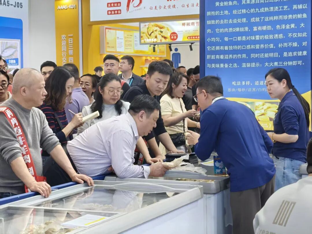 据悉,良之隆中国食材电商节素有“中国食材供应链第一展”的美誉。展会期间,海和惠食品展位前人头攒动。南日鲍黄金肉系列凭借国家地理标志产品的独特优势,吸引众多餐饮采购商和专业观众驻足品尝、咨询,现场订单不断,充分彰显出其强大的市场吸引力。