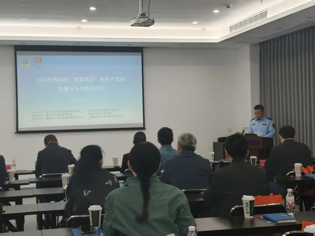 为深入推进质量强区建设,全面筑牢鲍鱼全产业链食品安全防线,助力特色水产产业提质增效、品牌化发展,4月8日,区市场监督管理局联合区海洋与渔业局共同举办2026年秀屿区“质量强区”鲍鱼产业链质量安全专题培训,以专业赋能护航产业高质量发展。
