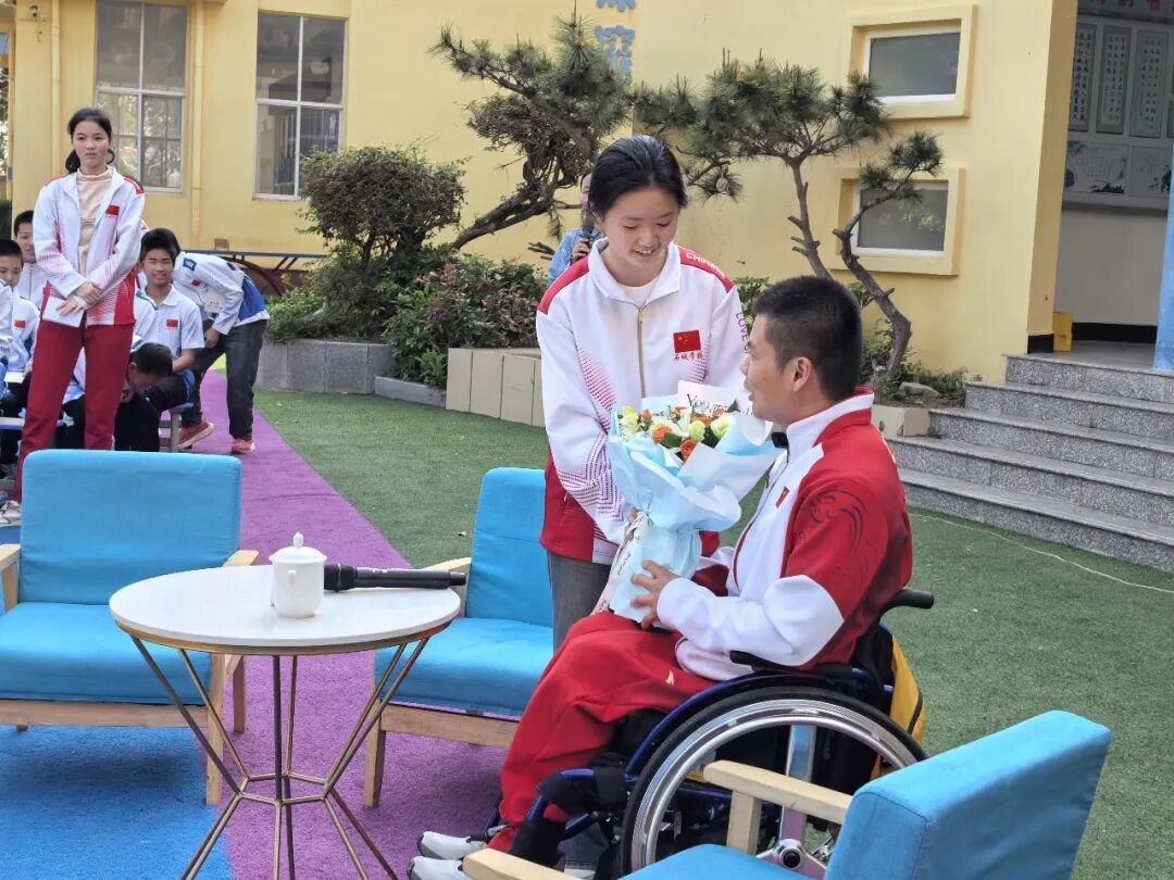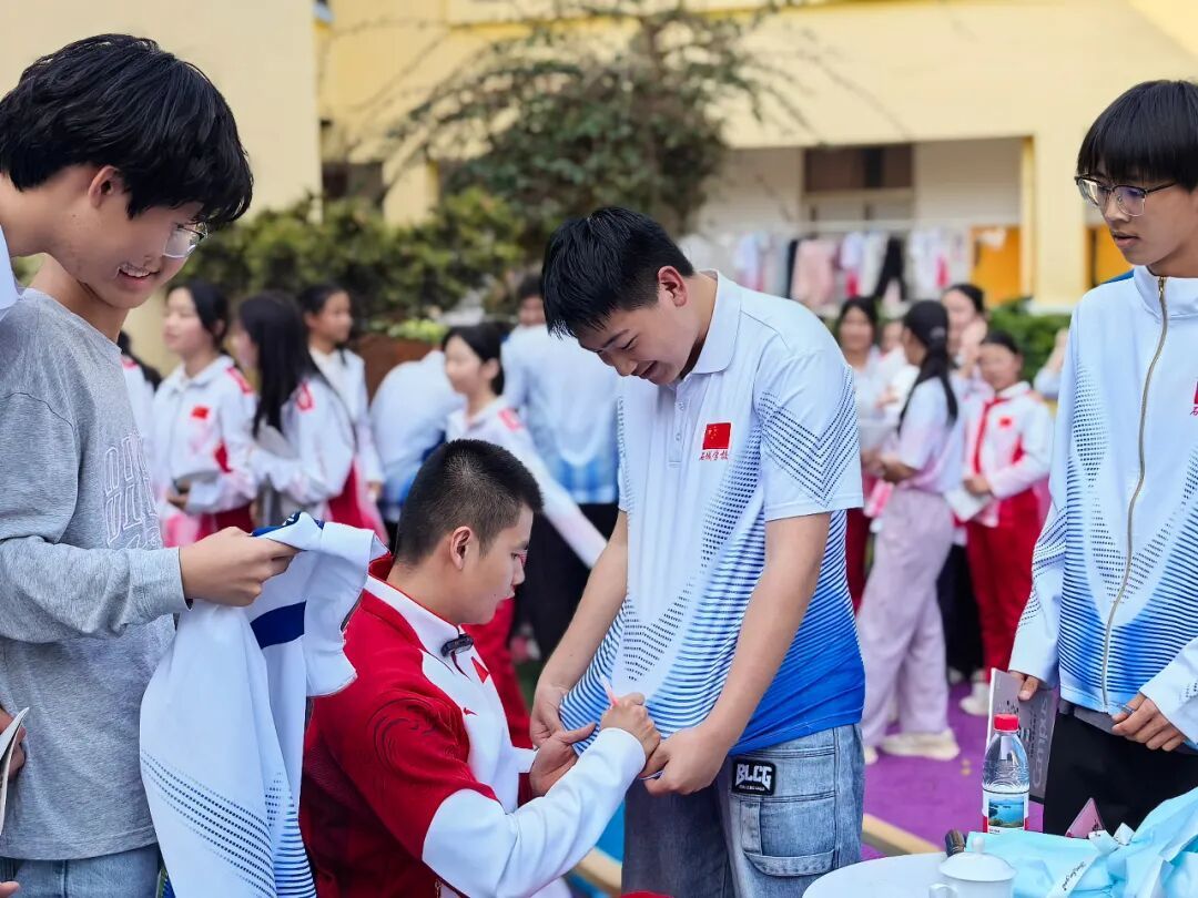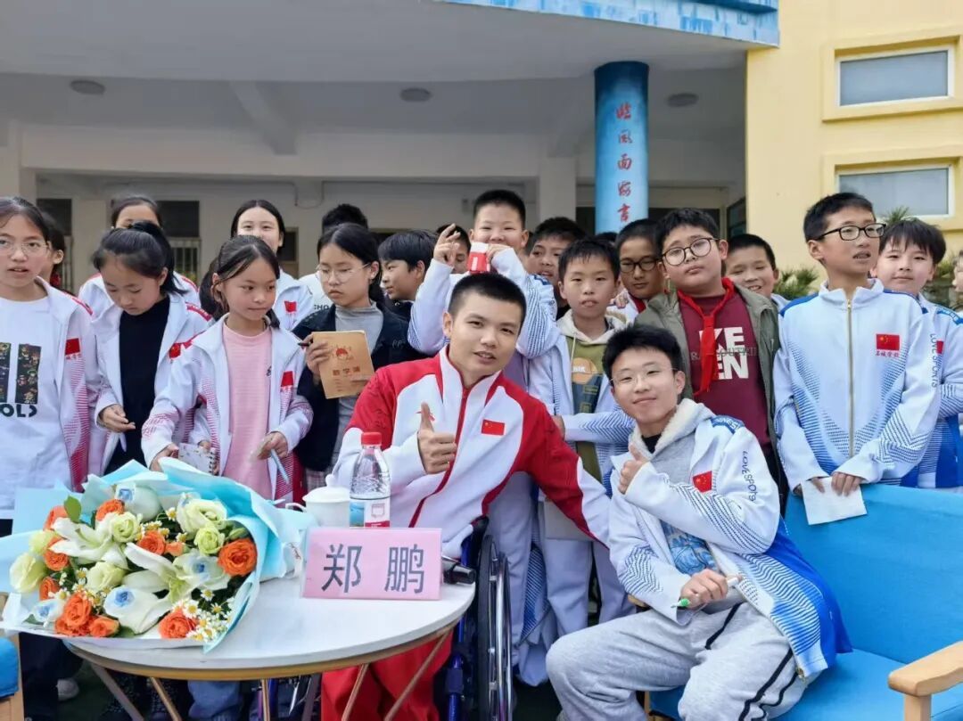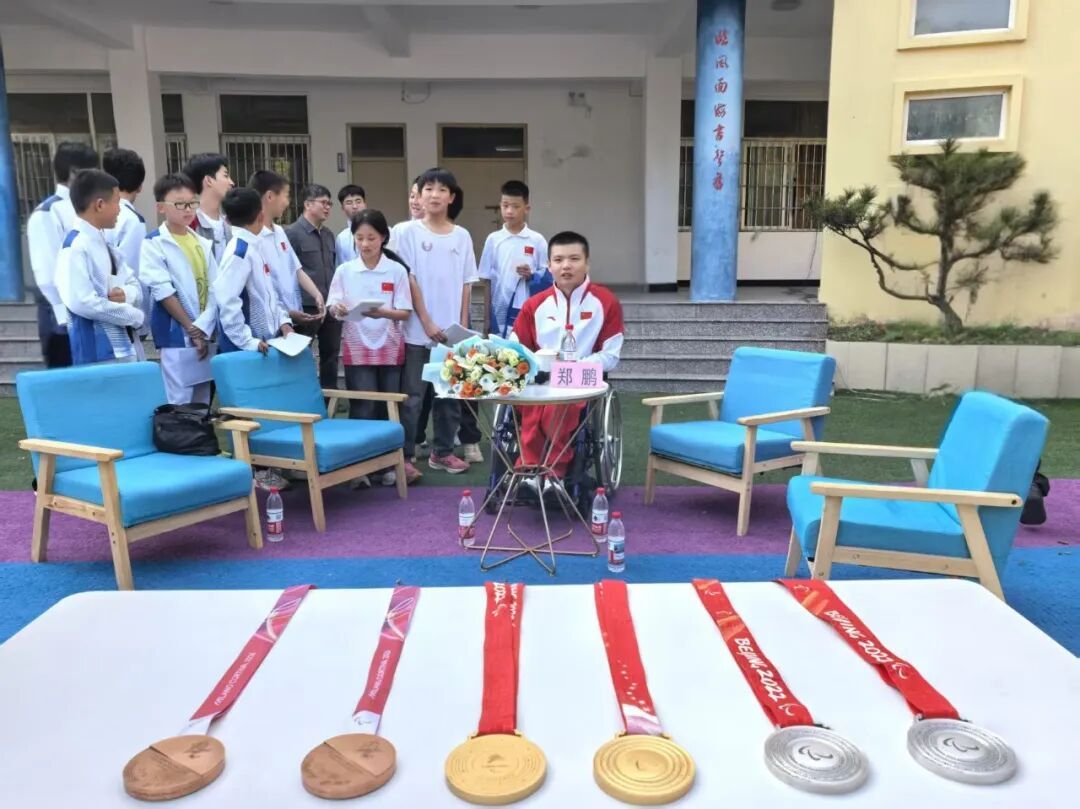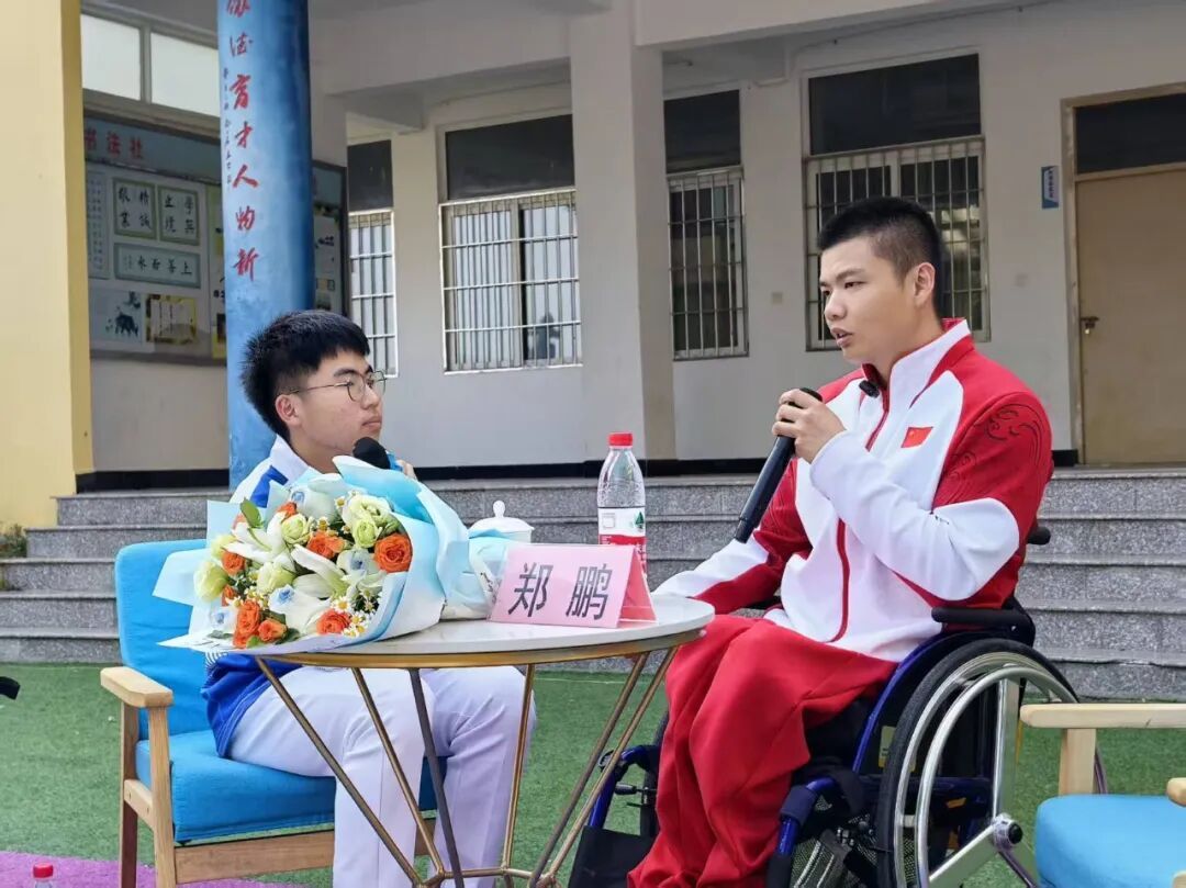 郑鹏一进入校园,便受到师生们的热情欢迎,整个校园瞬间开启“追光”模式。这位在冬残奥赛场上为国争光的运动员,为春日的校园注入了一股蓬勃向上的精神力量。分享环节,郑鹏讲述自己从遭遇挫折、重树信心,到坚持刻苦训练,最终站上奥运领奖台的心路历程,传递出自强不息、奋勇拼搏的奥运精神,并勉励同学们:“无论遇到什么困难,都要以坚韧不拔的意志去面对,每个人都能在自己的人生赛道上闪闪发光。”话语真挚,激荡人心,残奥冠军的拼搏与坚守,让同学们深刻理解生命价值,更激发了大家勇毅前行的勇气与决心。 互动交流环节,同学们踊跃提问,围绕成长困惑、学业压力、坚持的意义等话题,与冠军展开真诚对话。郑鹏耐心倾听、恳切回应,用朴实真挚的话语为年轻的心灵指引方向,在同学们心中播下坚韧、勇敢与希望的种子。