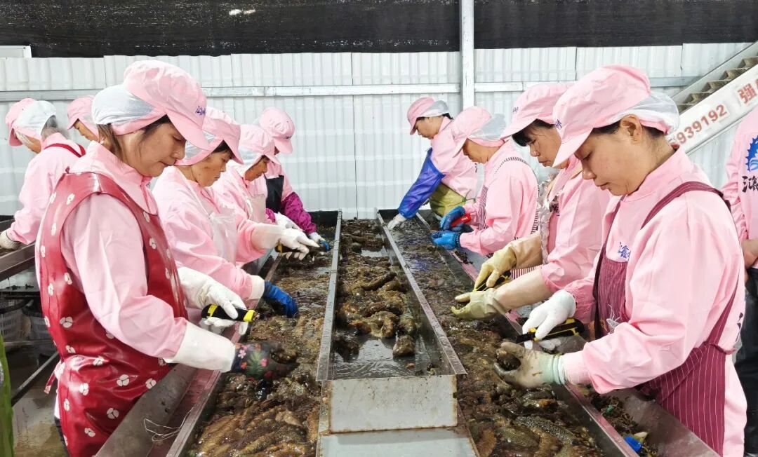 在距离石城码头不到一公里的海参加工车间内,同样是一派热火朝天的生产景象。数十名工人熟练地操作着,海参剖割、内脏清理、气泡清洗、煮锅蒸煮、冰水冷却等工序环环相扣,实现了从海上捕捞到车间加工的无缝衔接。据悉,企业自4月9日正式启动捕捞工作以来,日捕捞量达8万至10万斤,预计今年总产量约90万斤,产值可达4000万元。