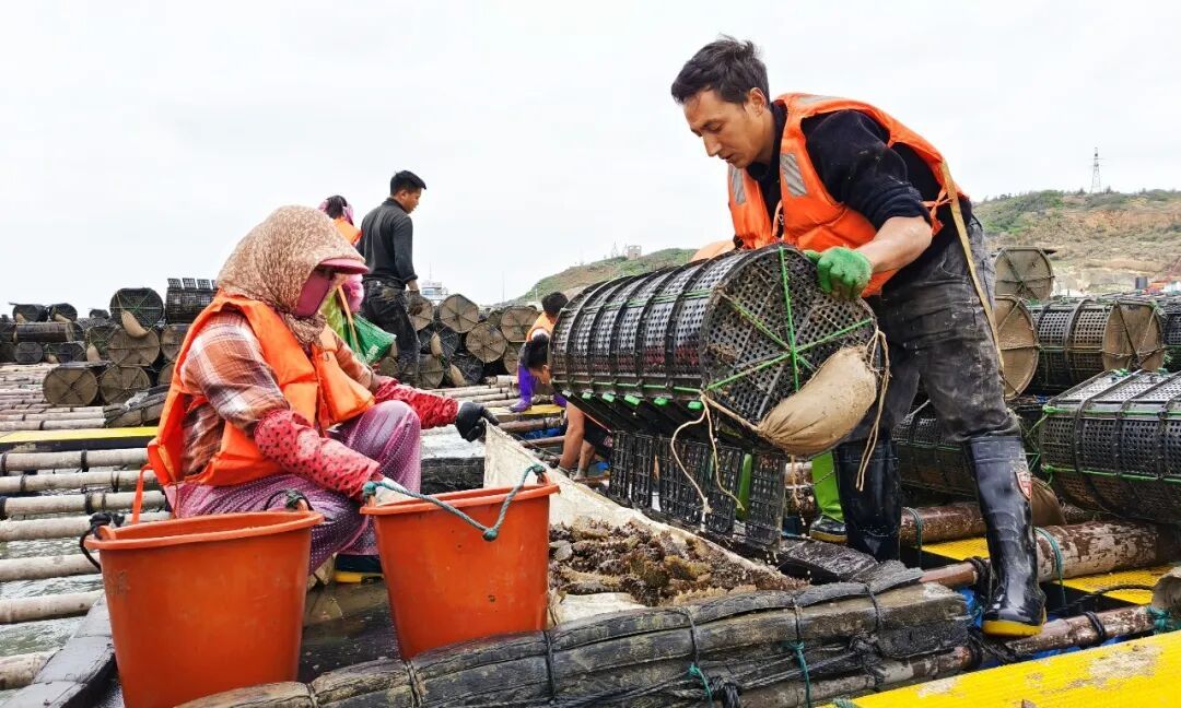 碧海泛金波,渔港迎丰收。连日来,秀屿区石城一级渔港一派繁忙。一筐筐个头硕大、肉刺粗壮的海参刚从海中打捞上岸,工人们分工协作,分拣、转运、加工有条不紊地进行着,丰收的气息浸润着整个渔港,“北参南养”产业模式迎来丰硕成果。
